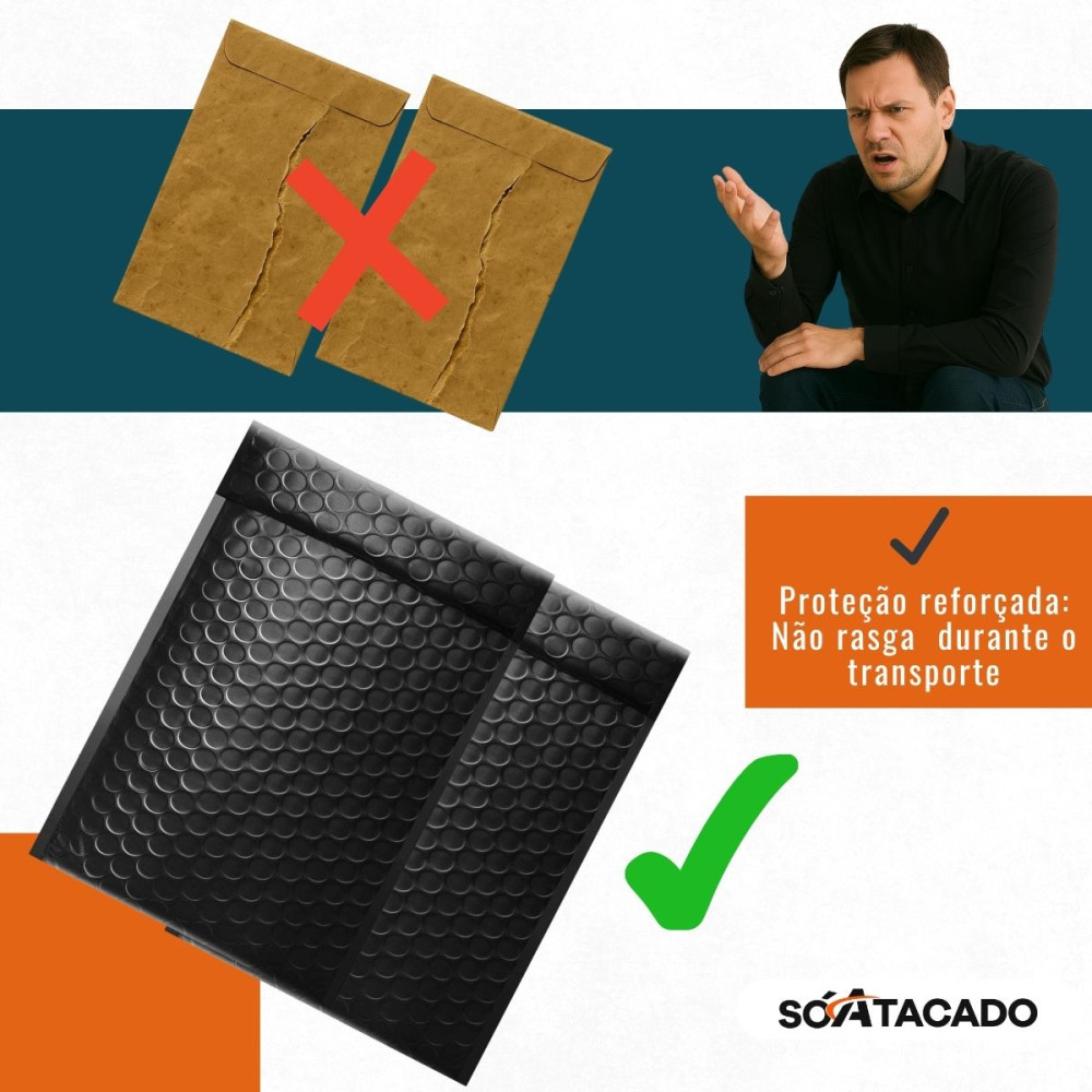 - Máxima proteção: A camada de bolha interna protege o conteúdo contra impactos