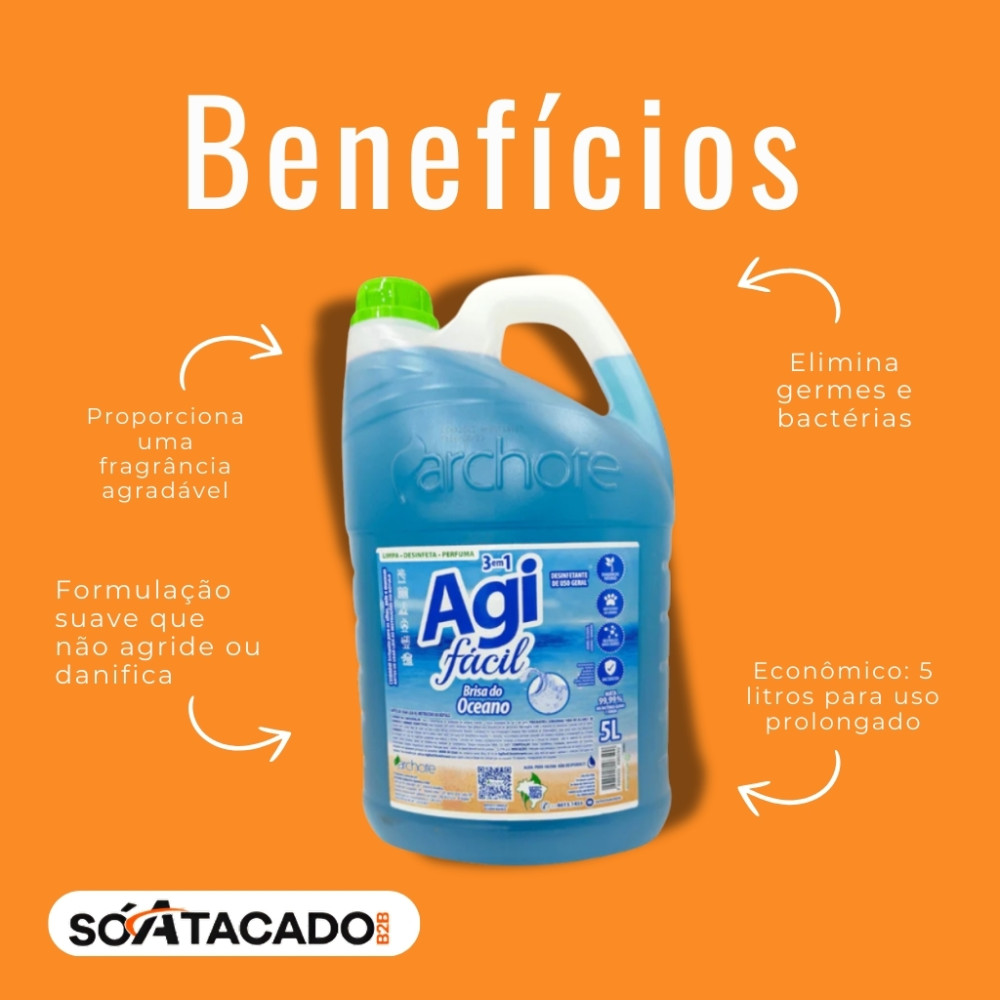 - Embalagem econômica de 5 litros, ideal para uso doméstico ou profissional