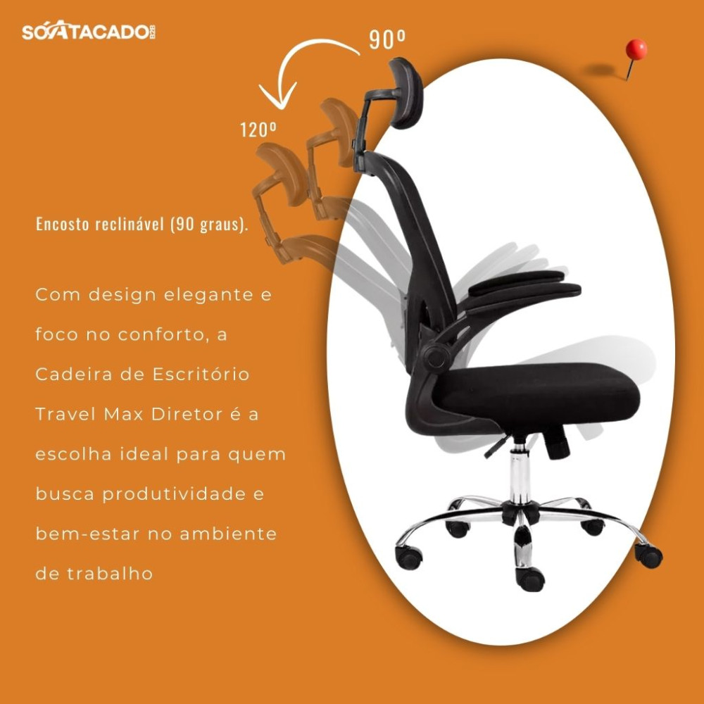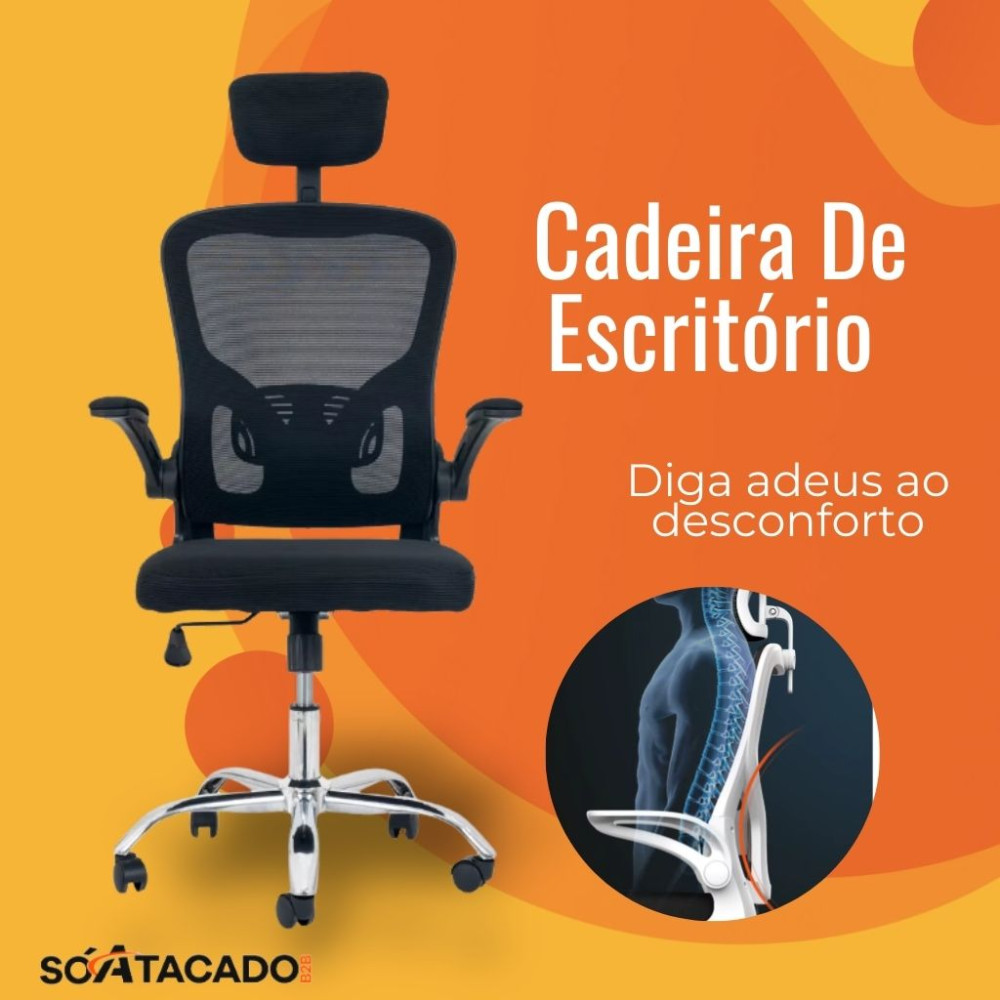 - Encosto confortável: Tela mesh que se adapta à curvatura da coluna para melhor suporte postural