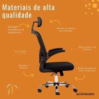 - Inclinação ajustável: Permite inclinar a cadeira para frente e para trás, proporcionando mais flexibilidade