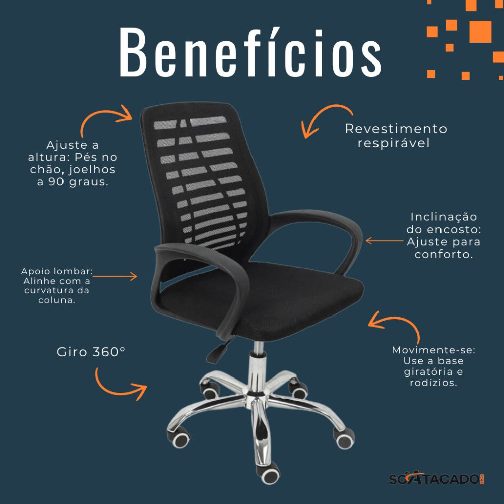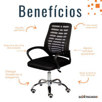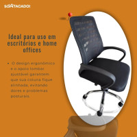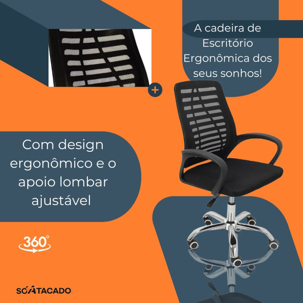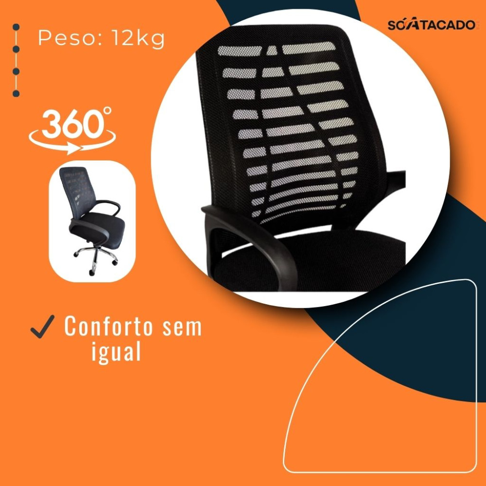 - Design ergonômico: Encosto em tela mesh com apoio lombar para manter a postura correta