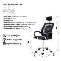 Itens Inclusos: 1 – Cadeira Escritório Zebrada Mesh com Suporte Cabeça.