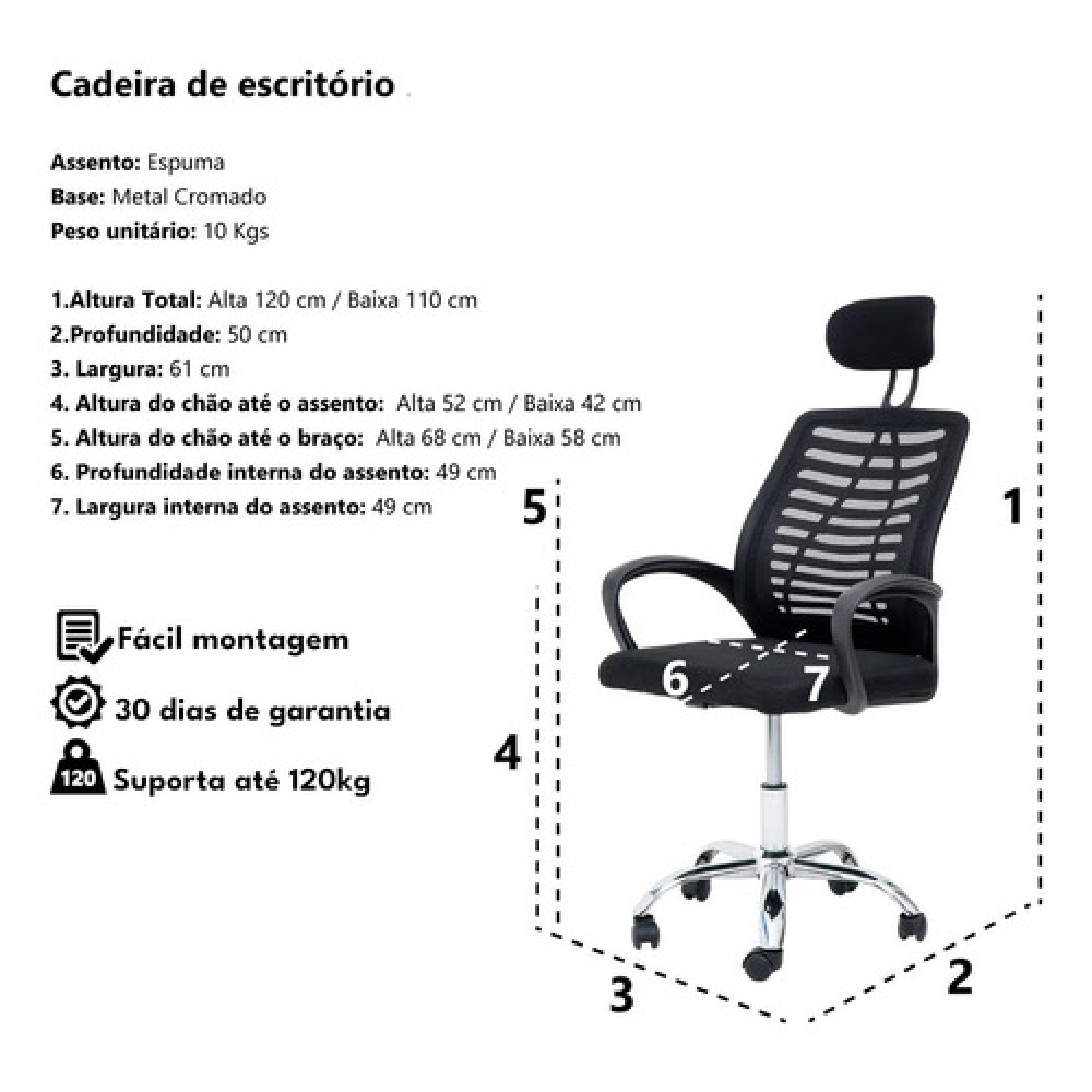 - Material Assento: Polipropileno + Espuma + Malha.