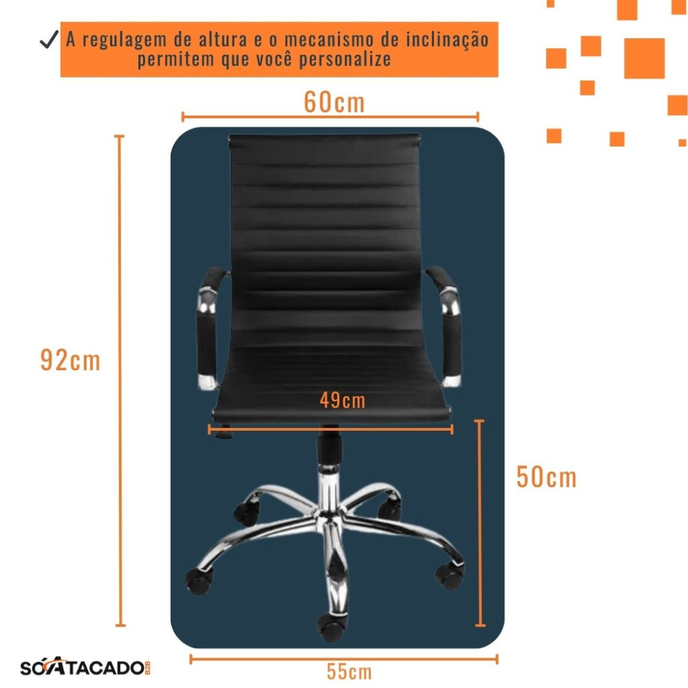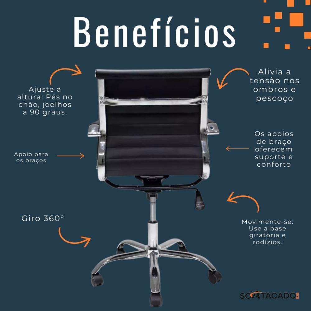 - Inclinação ajustável: Permite inclinar a cadeira para frente e para trás, proporcionando mais flexibilidade