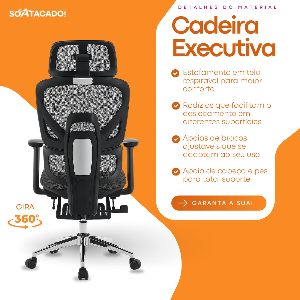 A Cadeira Ergonômica Premium foi projetada para oferecer máximo suporte postural e bem-estar durante longas horas de uso, ideal para escritórios, home office e gamers exigentes.