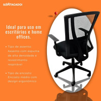 - Inclinação ajustável: Permite inclinar a cadeira para frente e para trás, proporcionando mais flexibilidade e conforto