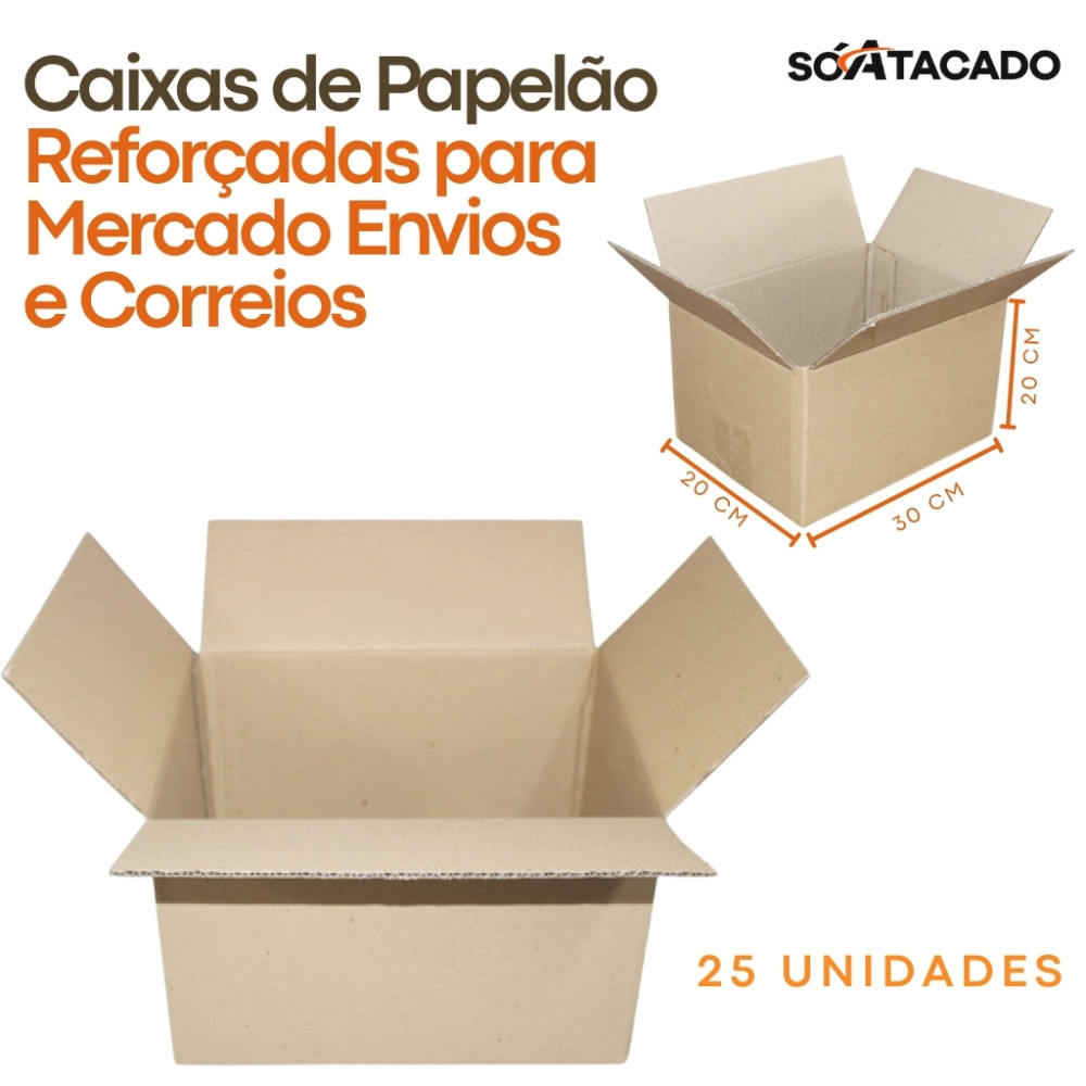 O pacote contém 25 unidades no tamanho 30x20x20 cm.