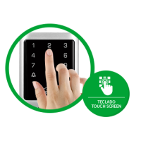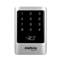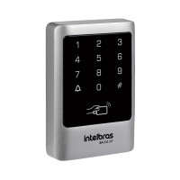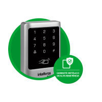 O acesso pode ser feito por senha ou proximidade (RFID 13,56 MHz).