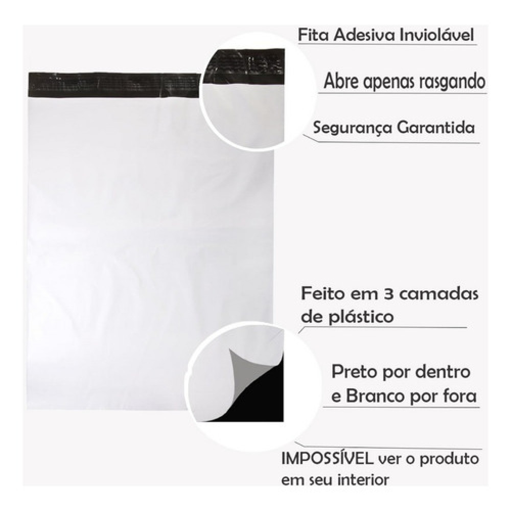 Vantagens: o Envelope Plástico de Segurança, além de manter em sigilo seu conteúdo, também garante maior proteção na entrega já que possui lacre de segurança inviolável com tecnologia que impossibilita sua abertura sem que possa ser notado no recebimento da mercadoria, assim proporcionando tranquilidade ao remetente.