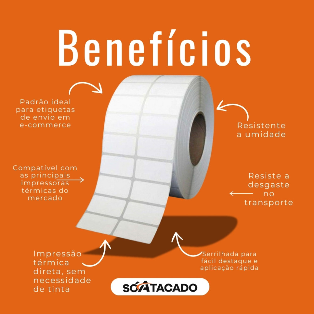 - Excelente custo-benefício: grande quantidade de etiquetas por rolo