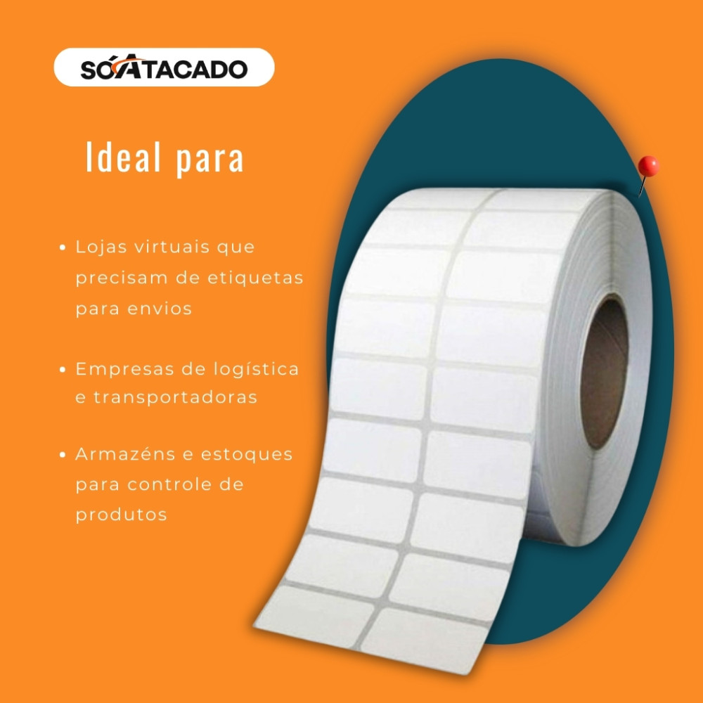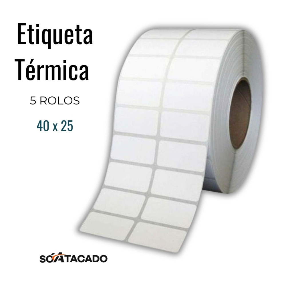 Etiqueta Térmica: rolo de 40x25mm compatível com várias impressoras, dispensando Ribbon.