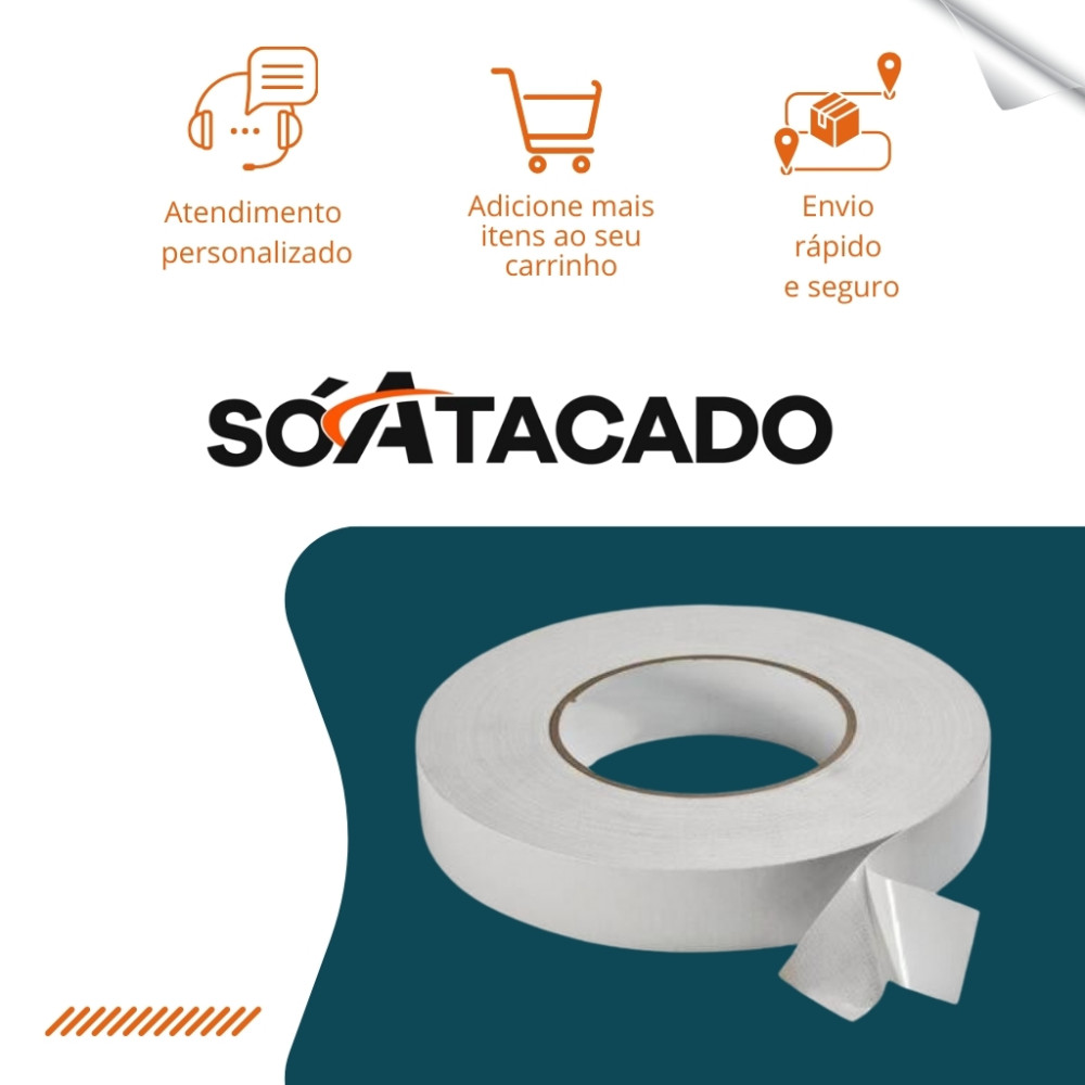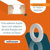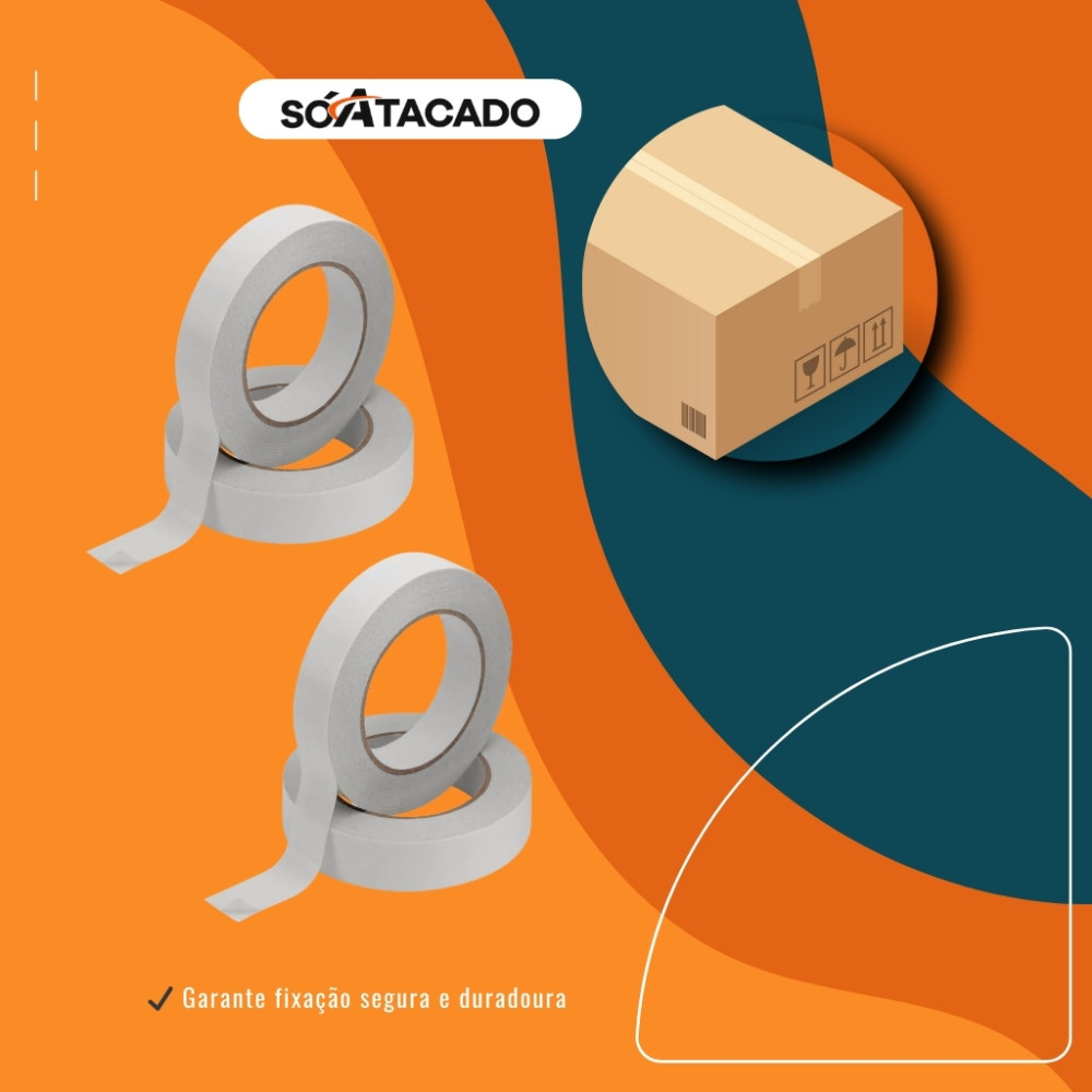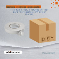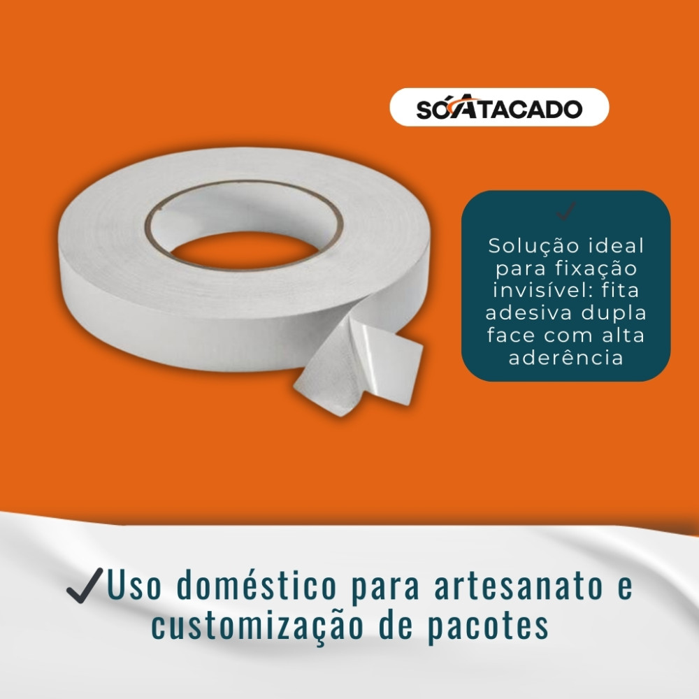 Fita Adesiva Dupla Face: fixação segura para diversas aplicações domésticas e leves, como empacotamento, fechamento de caixas, emendas e lacração de embalagens.