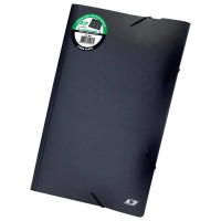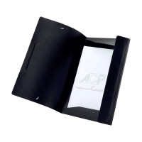 Pasta em cor preta com fechamento em elástico para manter documentos seguros e organizados.