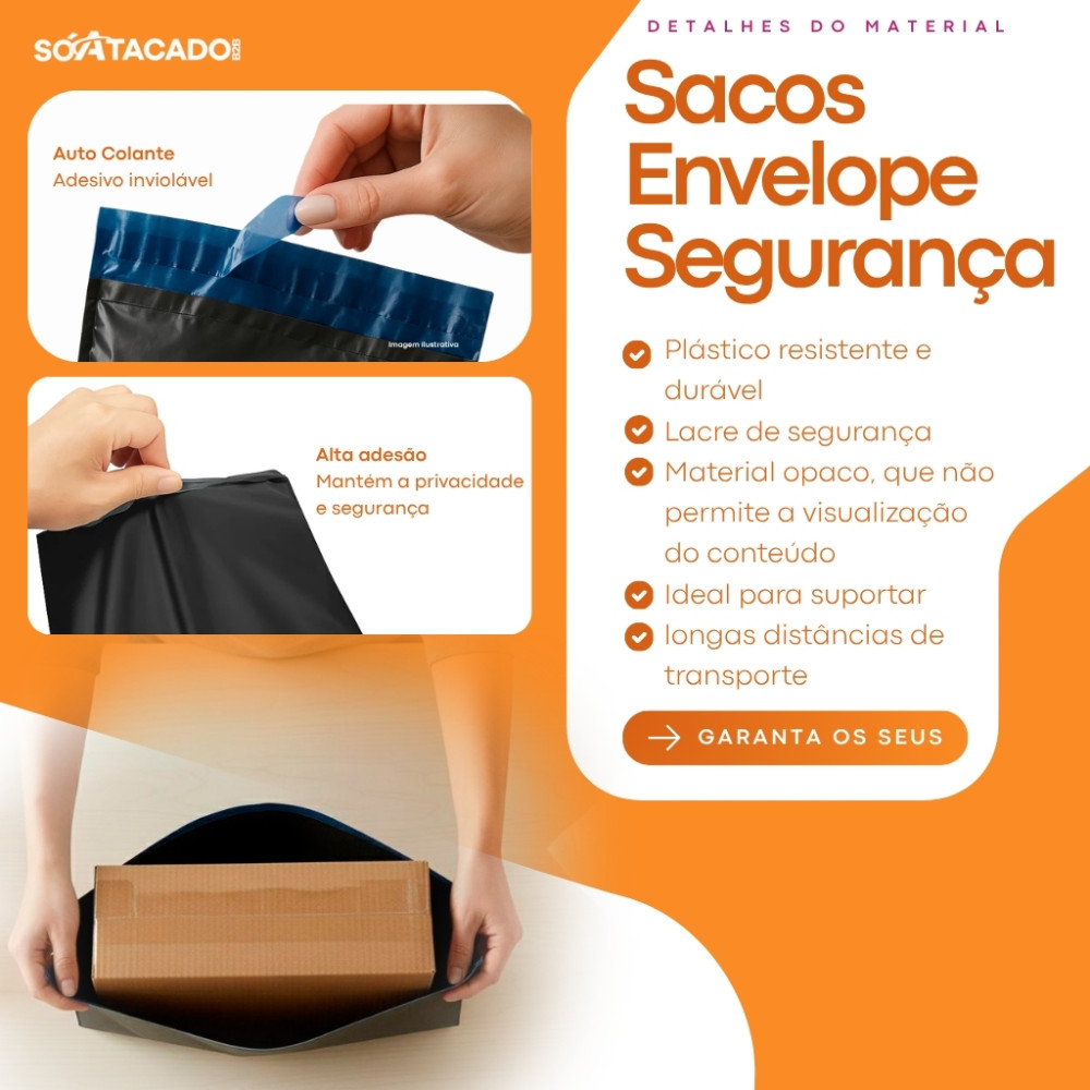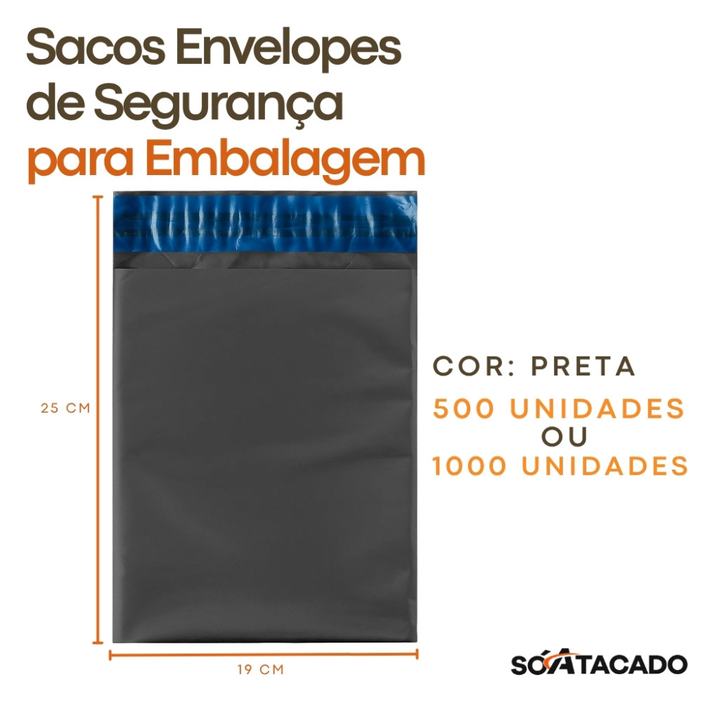 Os Envelopes De Segurança Preto 19x25 oferecem máxima proteção, praticidade e sigilo para suas entregas. Fabricados em plástico resistente com lacre inviolável, impedem a visualização do conteúdo e garantem segurança no transporte.