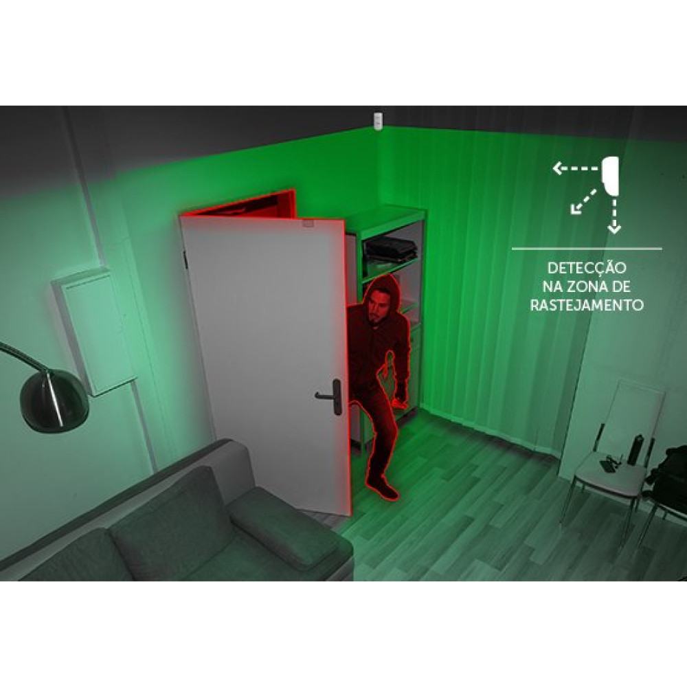 Desenvolvido com a lente look down, o sensor garante maior eficiência na detecção no momento da intrusão, identificando movimentos e rastejamentos.